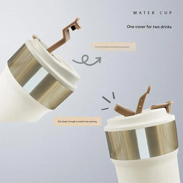 Дорожный стакан на 17 унций оснащен пылезащитной крышкой, предотвращающей попадание мелкой пыли, насекомых и другого мусора во время ежедневного использования. Он также имеет дизайн с двумя напитками.
