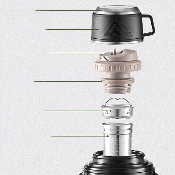 Эта туристическая колба с сверхвысокой холодной изоляцией производится из двухслойной нержавеющей стали, с внутренней вкладышей и внешней стеной. Он имеет скорость вакуума 99,8%, эффективно снижая теплопередачу и обеспечивая непрерывную тепло и холодную изоляцию.