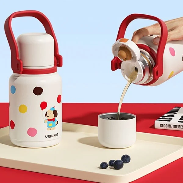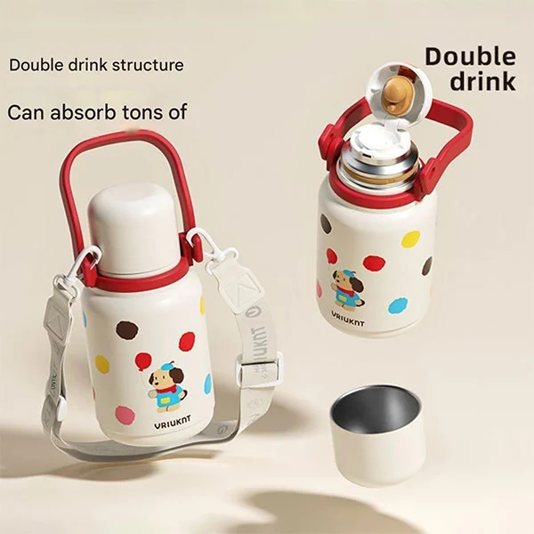 Изолированную вакуумную колбу можно использовать в качестве обязательной бутылки с водой для детей, когда они идут в школу или в путешествие, что очень подходит для детей, поскольку их руки маленькие, а ремни могут освободить руки.
